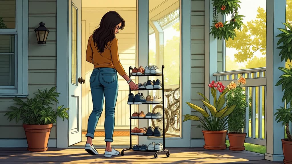 👉 Here's How You'll Do It: Move every loose shoe into one rack today and remove any extra pairs from the porch immediately.